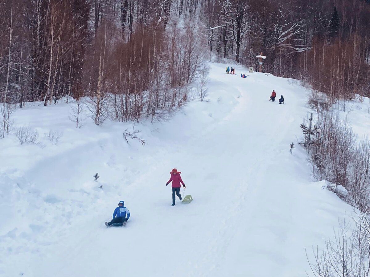 Mai precis, iubitorii de distracție în zăpadă se dau cu sania și cu schiurile pe șoseaua Pasul Vâlcan, pe o lungime de aproape patru kilometri, care este închisă circulației auto pe timpul iernii. Turiștii ajung cu telegondola în stațiunea Pasul Vâlcan, iar de acolo coboară cu sania și schiurile până în orașul Vulcan, în parcarea de la poalele muntelui. „Pârtia” pentru săniuș trece chiar pe sub telegondolă și traversează o pădure cu brazi și pini.