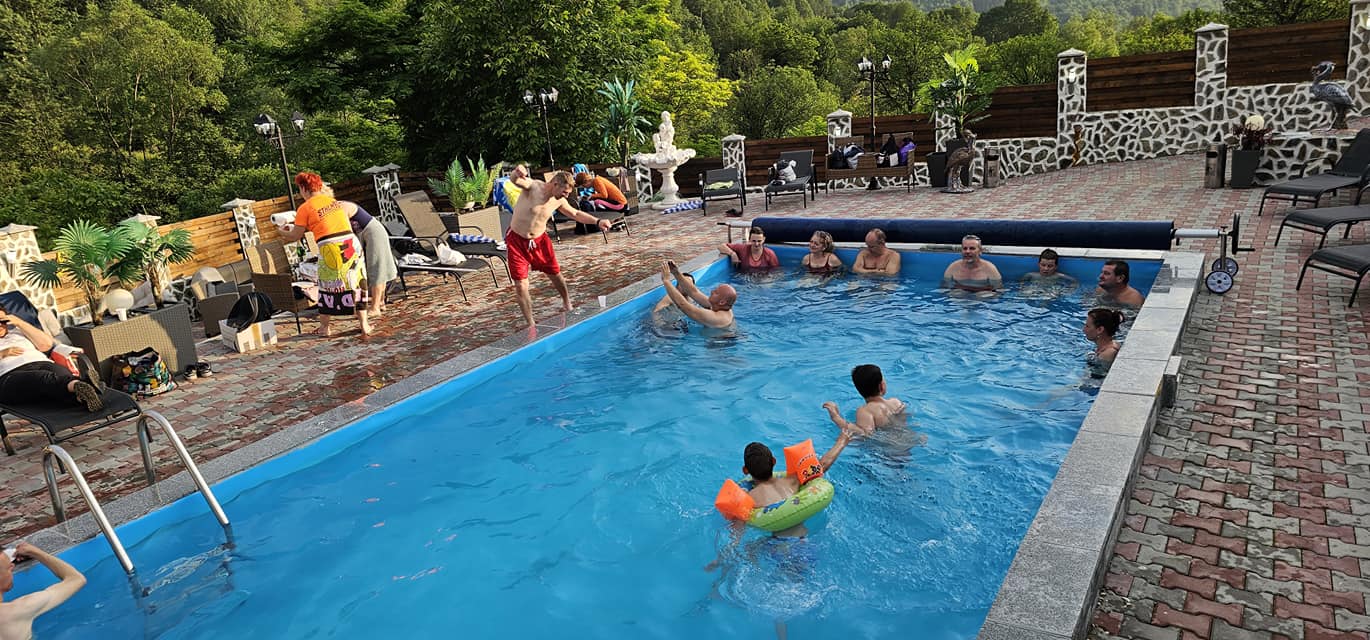 Nimeni nu va scăpa de apă de oarece aici exista o piscină cu apa calda și ciubăr. Noi vom folosi în prealabil piscina și pe lângă bălăceală va fi și o bătaie pe cinste cu apă.