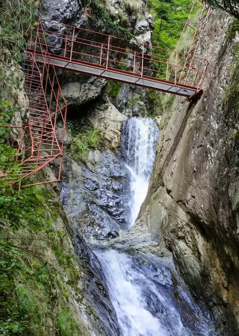 De departe cea mai frumoasă și spectaculoasă parte este tocmai partea cu podețul care te trece valea fix pe deasupra pragului dintre două cascade spectaculoase.